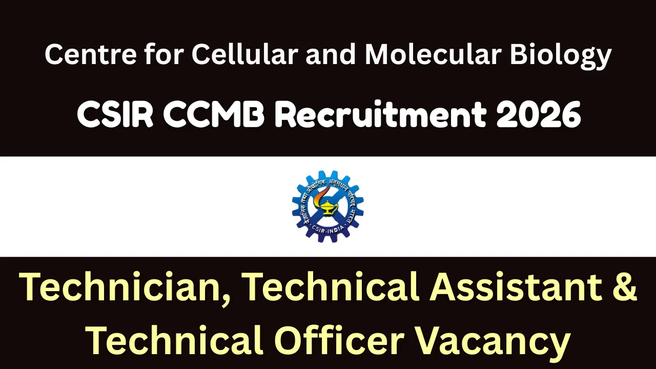 The Centre for Cellular and Molecular Biology (CSIR-CCMB), Hyderabad, has officially released the CSIR CCMB Recruitment 2026 Notification on 19th January 2026. CSIR-CCMB has announced a total of 80 tentative vacancies for the posts of Technician, Technical Assistant, and Technical Officer through advertisements Advt. No. 01/2026 and 02/2026. Interested and eligible Indian citizens can apply online from 27th January 2026 to 23rd February 2026 through the official CSIR-CCMB website. Candidates must also send a hard copy of the submitted application to the institute by 2nd March 2026.