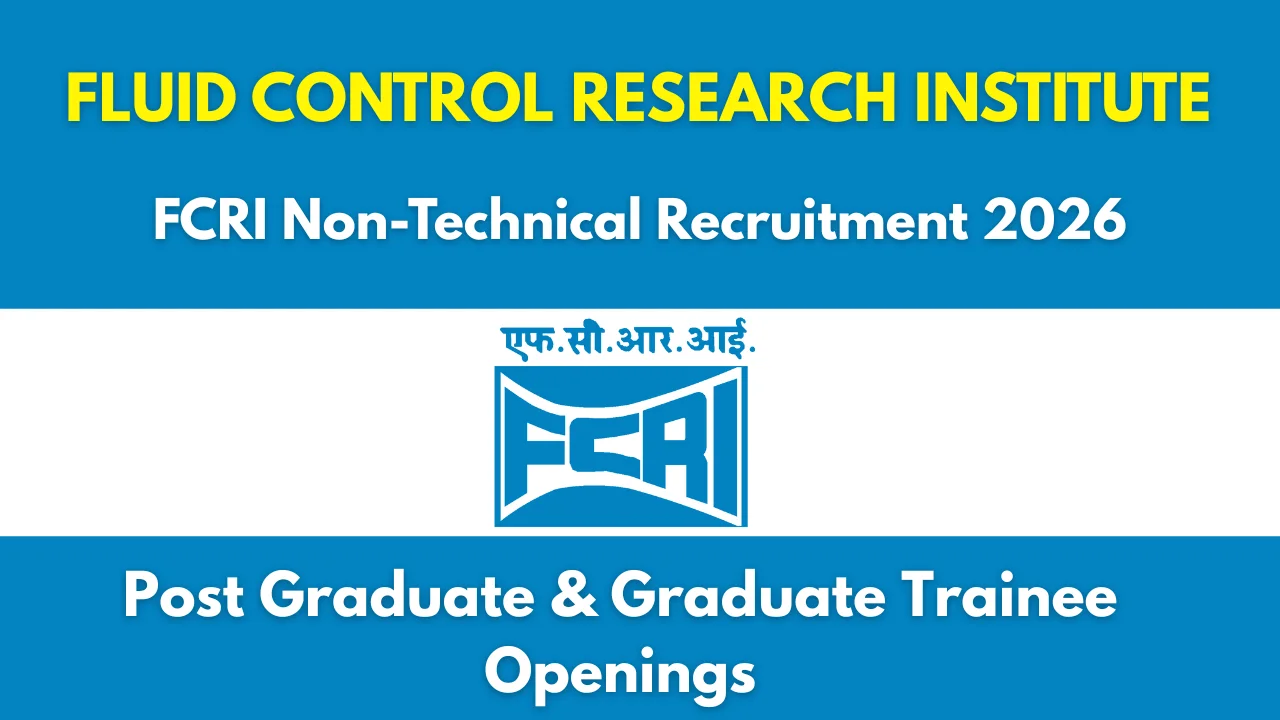 The Fluid Control Research Institute has officially released the FCRI Non Technical Recruitment 2026 Notification No. FCRI/P&A/2025-26/PG &UG(Trainees)/001 on 29th December 2025. FCRI has announced multiple vacancies for Executive (Post Graduate Trainee) and Executive (Graduate Trainee) positions on a short-tenure contract basis. Interested and eligible candidates can apply by downloading the application form from the official website and emailing it to careers@ferlindia.com from 30th December 2025 to 30th January 2026 (5:30 PM).