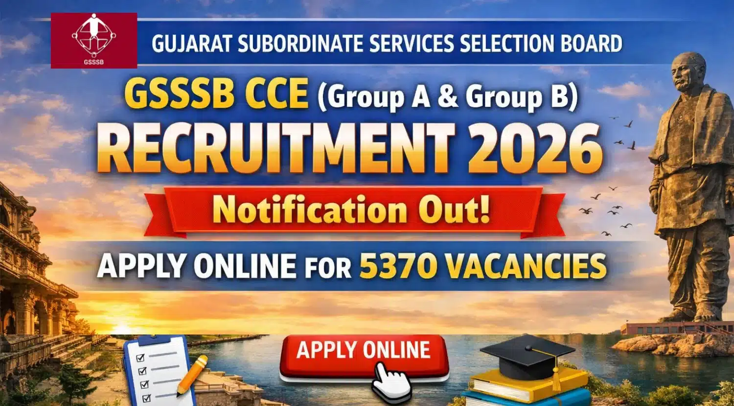 5370 Posts – Subordinate Service Selection Board – GSSSB CCE Recruitment 2026 – Last Date 23 February Govt Exam Update
