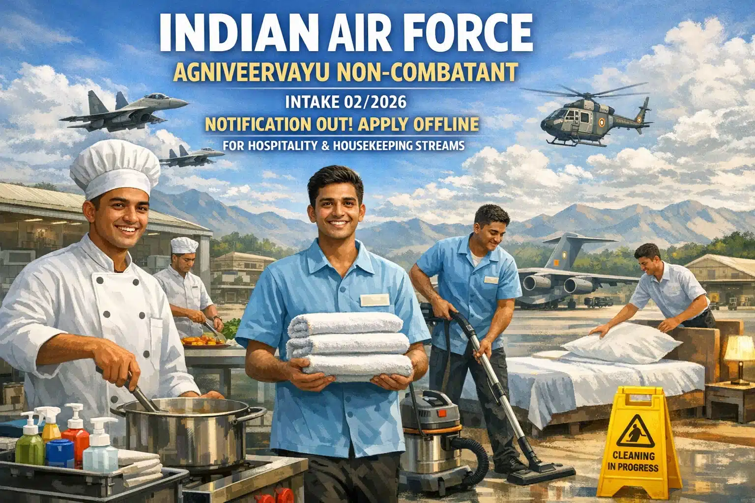 IAF Recruitment 2026 : The Indian Air Force (IAF) has officially released the Agniveervayu Non-Combatant (Intake 02/2026) notification under the Agnipath Scheme on 7th February 2026. This recruitment invites eligible and interested unmarried male candidates to apply offline for selection as Agniveervayu Non-Combatant in two streams: Hospitality and Housekeeping. Candidates can check the detailed eligibility, age limit, medical standards, selection process, and pay package before applying.