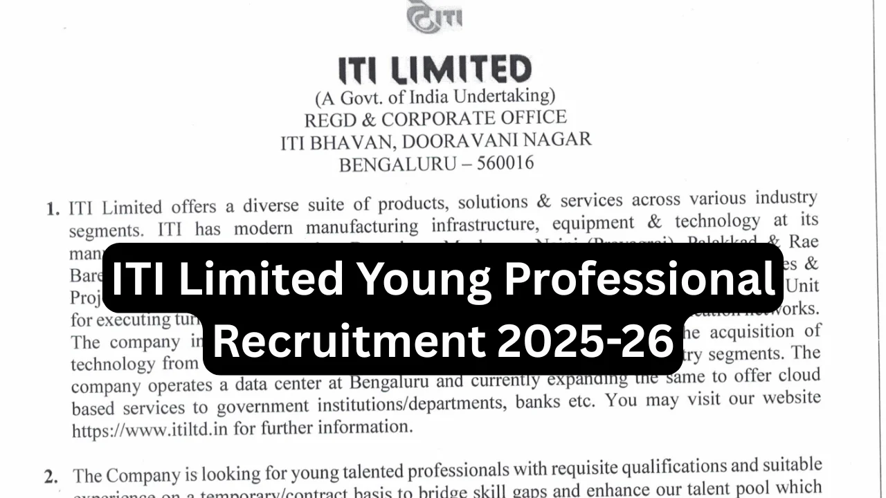ITI Limited Young Professional Recruitment 2025-26 Overview