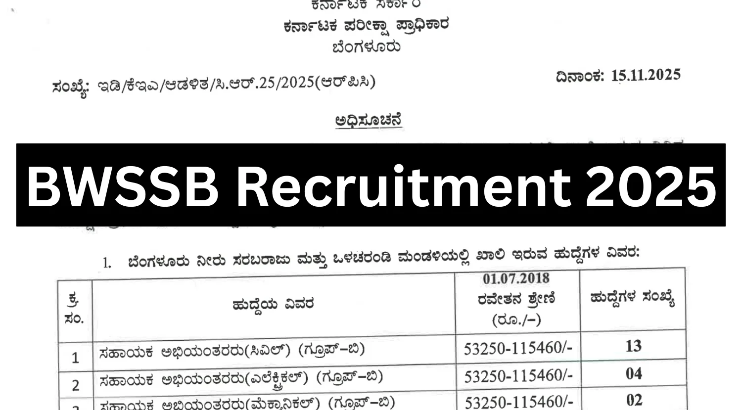 The Karnataka Examinations Authority (KEA), on behalf of the Bangalore Water Supply and Sewerage Board (BWSSB), has officially released the BWSSB Recruitment 2025 Notification on 15th November 2025. This recruitment drive aims to fill 224 vacancies for various Group-B and Group-C posts, including Assistant Engineer and Junior Engineer, in the Residual Parent Cadre (RPC). Interested … Read more