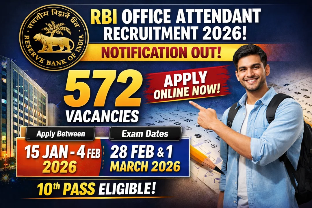 RBI Office Attendant Recruitment 2026 : The Reserve Bank of India has officially released the RBI Office Attendant Notification for Panel Year 2025-26 on January 15, 2026. RBI has announced 572 vacancies for the post of “Office Attendant” across various regional offices. Interested candidates can apply online from January 15 to February 04, 2026, through the official RBI website. Applicants must ensure they meet the specific eligibility criteria regarding age and educational qualification before applying for RBI Office Attendant Recruitment 2026.