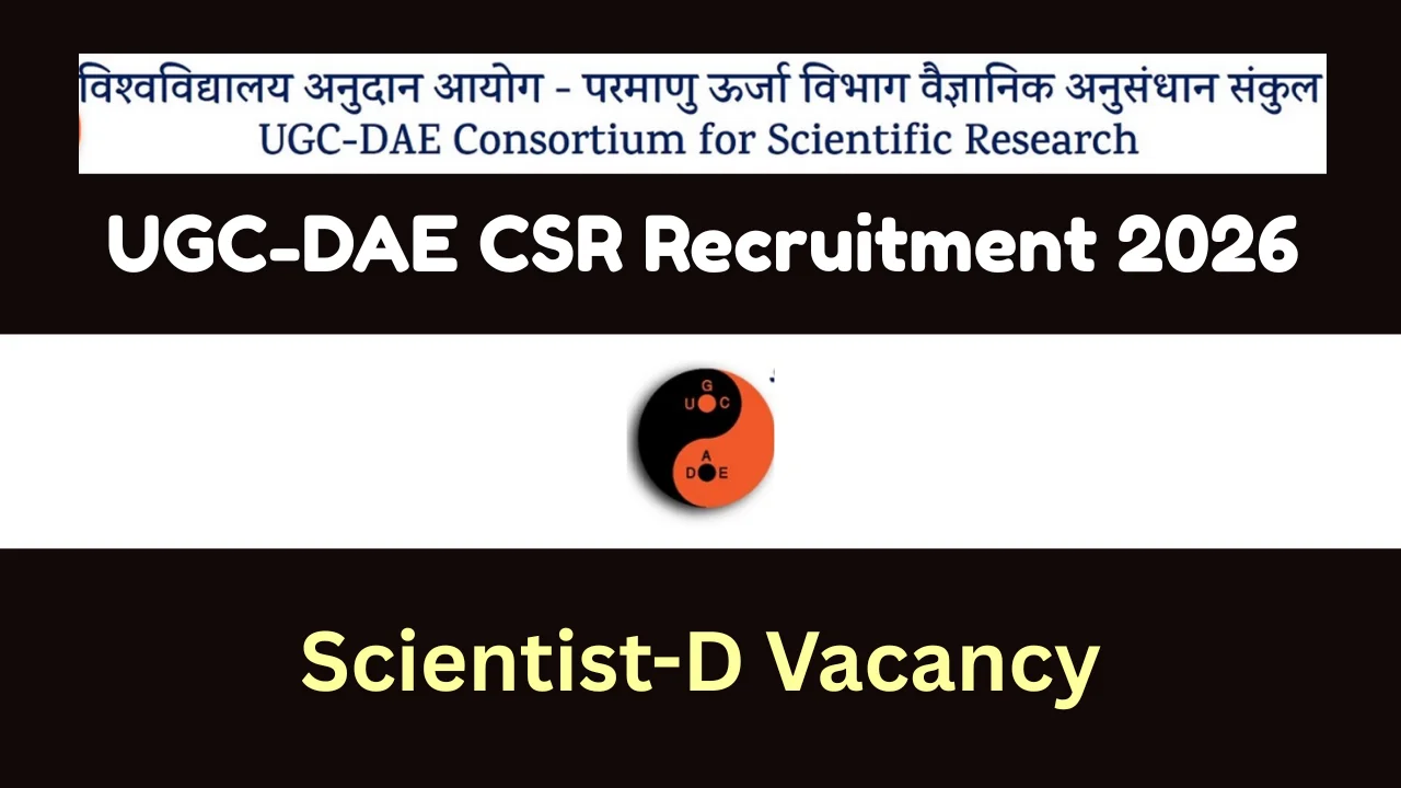 UGC DAE CSR Scientist Recruitment 2026 : The UGC-DAE Consortium for Scientific Research (UGC-DAE CSR) has officially released the UGC-DAE CSR Scientist Recruitment 2026 Notification (Advertisement No. 02-2026) for the recruitment of a Scientist-D position. The post is open for candidates with expertise in Experimental Raman Scattering. Eligible and interested candidates can apply online through the official UGC-DAE CSR website at www.csr.res.in. The online application portal will open on 5th January 2026 and close on 31st January 2026.